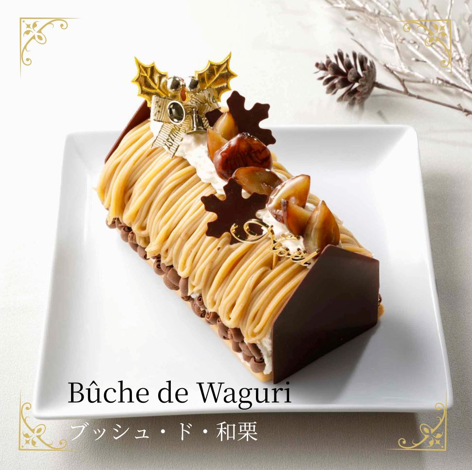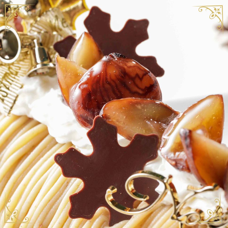 香り豊かな和栗のクリームを贅沢に絞り、やさしい甘さの生クリームで和栗のコンカッセ入りカスタードを包みました。和栗本来の上品な風味が広がる、クリスマスだけの特別なモンブランケーキです。